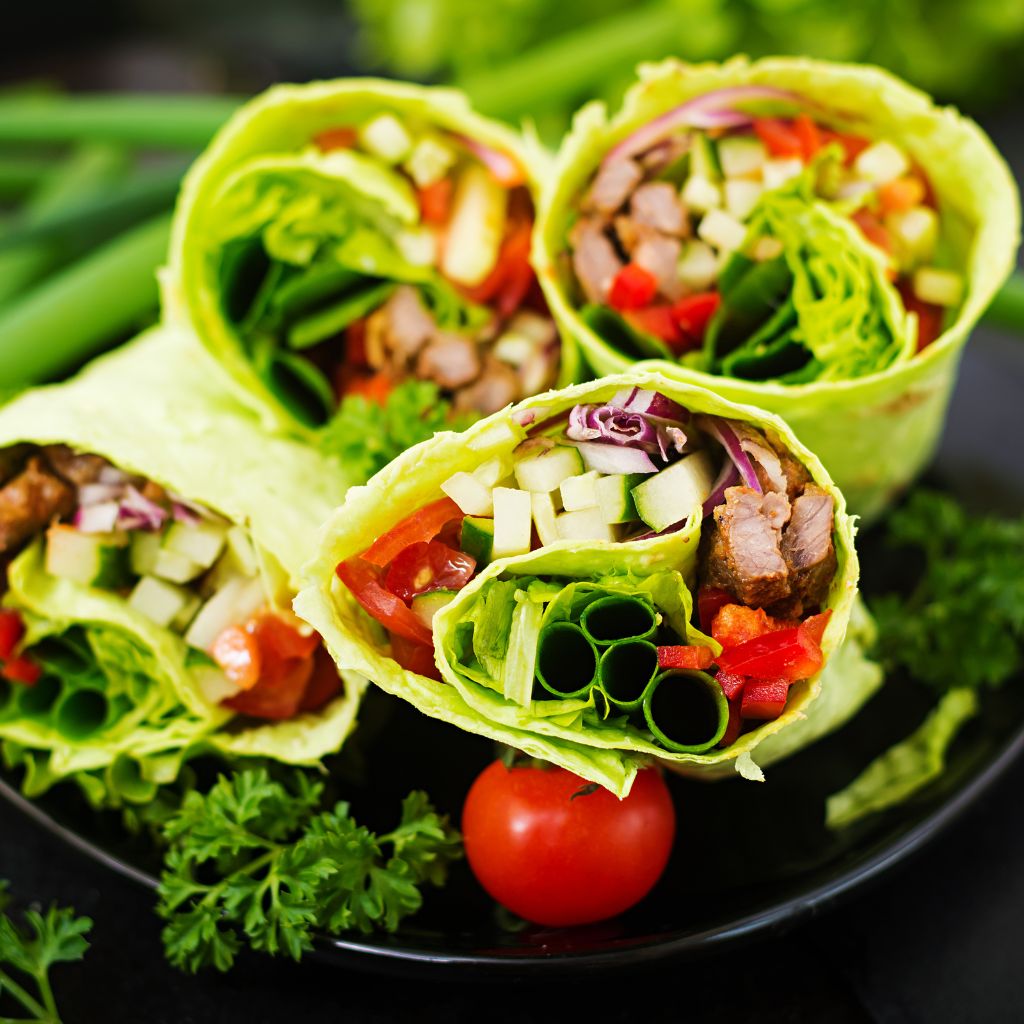 - Assemble your fresh vegetable lettuce wraps with sauce.